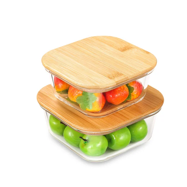 Square bamboo lid borosilicate oven baking glass container. Capacity: 800ML