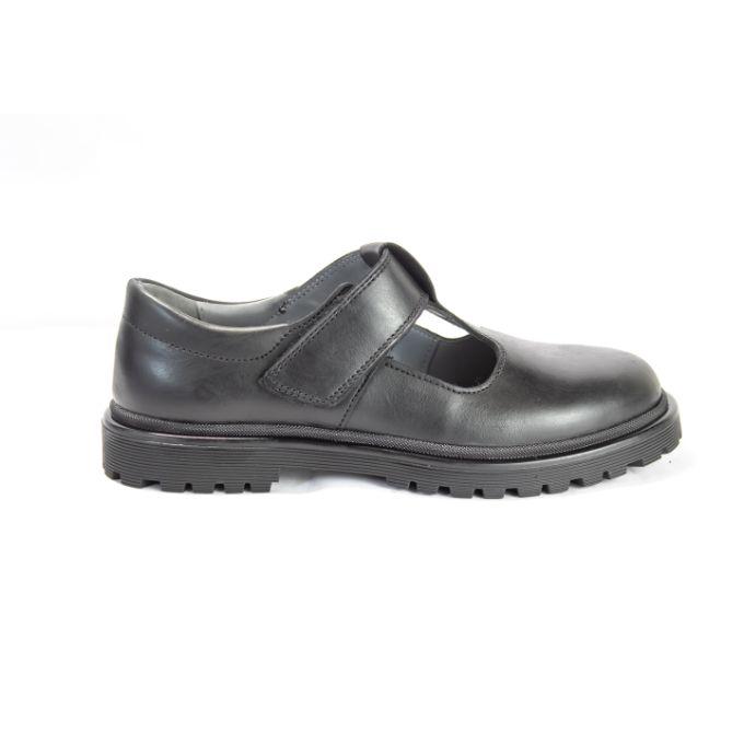 This black leather girls’ school shoe boasts a high grade Velcro fastening strap that has a double lining to enhance support and longevity. The shoe is made from high quality soft leather that is comfortable and lightweight for active feet and has a salient T bar and eye drop embellishment for that natural feminine appeal. It is Made with leather uppers and lightweight rubber outsoles that are both durable and flexible, they offer a highly comfortable fit for all day use. While the leather is soft and supple, making it easy to clean and polish, it does offer extremely good support and protection for the upper foot. The shoes go through very thorough flex tests to ensure the leather can hold up to the high demands of being on an active child’s foot. The shoe collars are padded for increased comfort and support, and the heel counter is reinforced for increased support, while the toes are rounded for a better fit and breathability. High grade Velcro has been used as a fastening mechanism.
